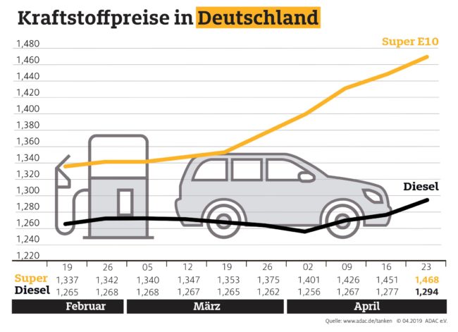 München (ots) Seit Wochen kennen die Durchschnittspreise für Benzin und Diesel nur eine Richtung: nach oben. Diese Entwicklung setzt sich fort. Laut aktueller Auswertung des ADAC verteuerte sich ein Liter Super E10 im Bundesdurchschnitt um 1,7 Cent auf 1,468 Euro, für einen Liter Diesel müssen Autofahrer im Mittel 1,294 Euro bezahlen, ebenfalls 1,7 Cent mehr…