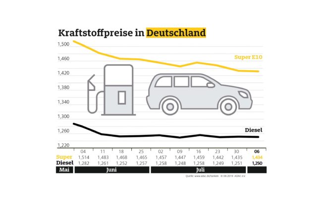 München (ots) Die Preise für Benzin und Diesel sind derzeit stabil. Laut aktueller Auswertung des ADAC müssen Autofahrer für einen Liter Super E10 im Bundesdurchschnitt 1,434 Euro bezahlen, das sind 0,1 Cent weniger als in der vergangenen Woche. Ein Liter Diesel verbilligte sich im Mittel ebenfalls um 0,1 Cent auf 1,250 Euro. Der deutliche Rückgang der…